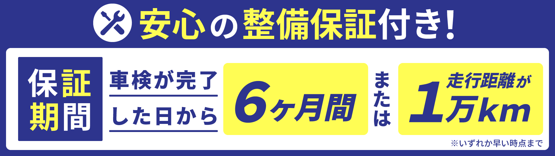福山市・笠岡・井原・尾道・府中エリアのお客様が安心してご利用いただけるように、【車検後6か月・または走行距離が1万kmの保証】もお付けしております。