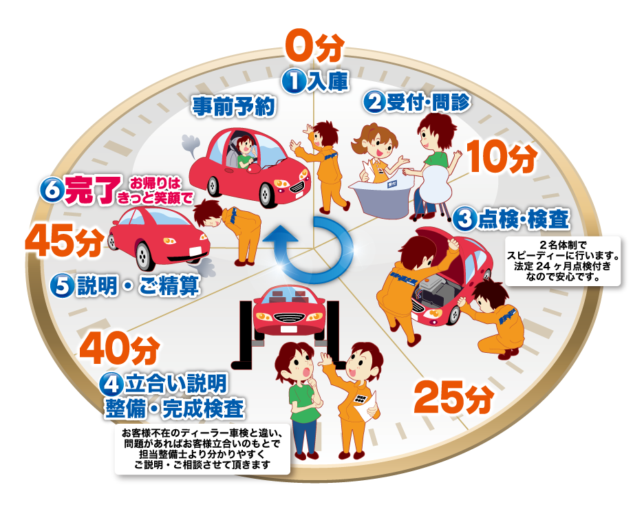 掲げているブランド「車検の速太郎」は全国で140店舗以上、累計で350万台の車検を行う最短45分の短時間立合い車検の専門店です。